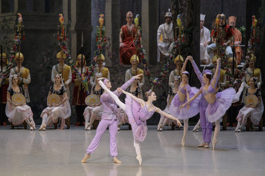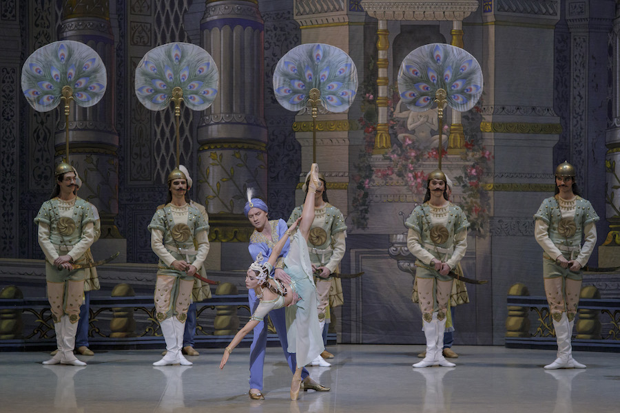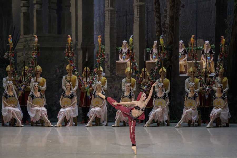 Торжественным появлением Великого брамина, жрецов и баядерок, служительниц храма, открывается праздник поклонения огню. Кульминация торжества — танец прекрасной Никии.