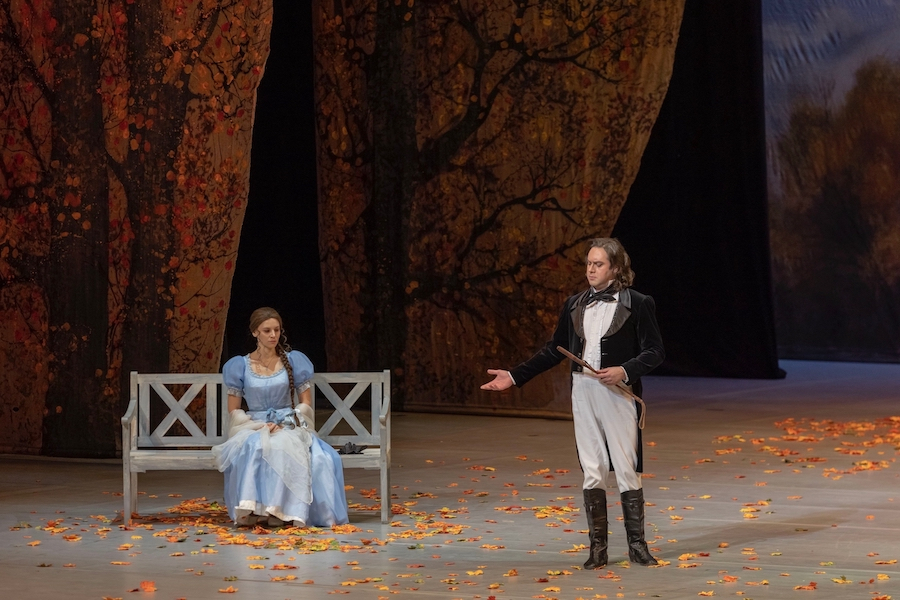 Постановка, осуществлённая на Приморской сцене признанными петербургскими мастерами, заслуженным деятелем искусств России Алексеем Степанюком и народным художником России Вячеславом Окуневым, выдержана в традициях большого стиля. Этот костюмный исторический спектакль перекликается со знаменитым «Евгением Онегиным» из репертуара Мариинского театра.