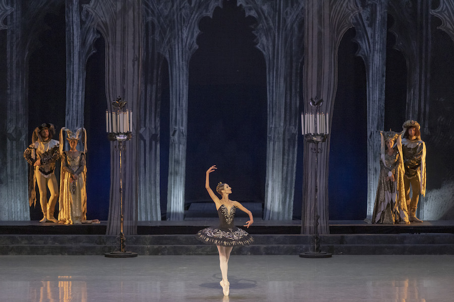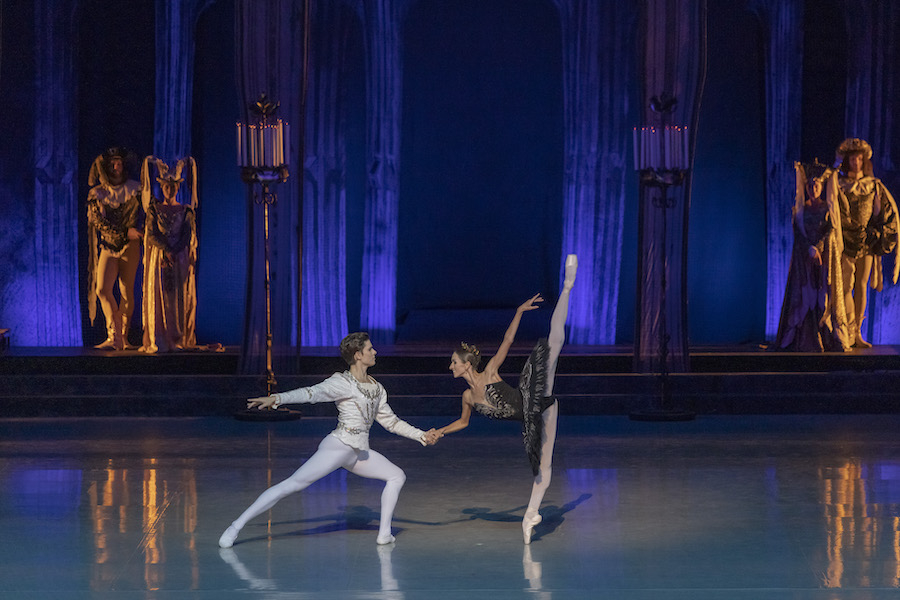 Бал в замке. Одна за другой предстают перед принцем красавицы, но ни одна не привлекает его внимание. Сердце Зигфрида отдано Одетте. Звуки фанфар возвещают о прибытии новых гостей. В обличье знатного рыцаря появляется волшебник Ротбарт, с ним — его дочь Одиллия. Зигфрид растерян: эта красавица необычайно похожа на Одетту! Одиллия не даёт принцу опомниться, она манит, чарует, обольщает… и принц настолько увлечён, что клянётся ей в любви. Отныне она его невеста! Ротбарт торжествует: Зигфрид нарушил клятву, данную Одетте, и значит — нет любви, нет преданности, ничто не в силах противостоять его власти. Перед Зигфридом возникает видение Одетты и, поняв весь ужас обмана, жертвой которого он стал, юноша устремляется к озеру, к Одетте.